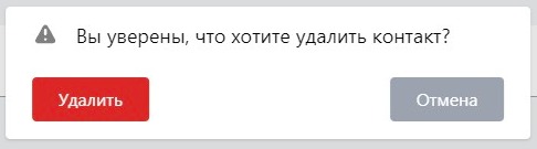 Удалить контакт можно с помощью кнопки , при нажатии на неё появится всплывающее окно. В нём кнопка «Удалить» окончательно удалит контакт, кнопка «Отмена» соответственно отменит удаление.