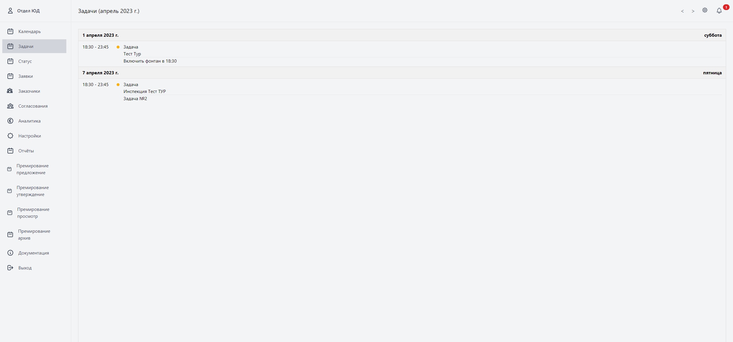 При создании новой задачи для отделов дворца во время формирования программы начальникам отделов на почту и в систему YUSDOC приходит уведомление о новой задаче по данному мероприятию.
